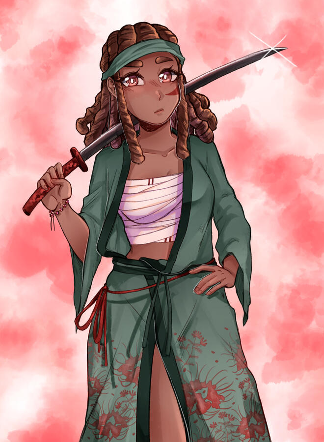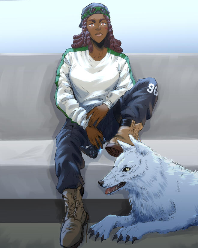 My OC has gone through several changes overtime, but the current design is based off of Princess Mononoke, which is my favorite Miyazaki Movie! I plan on adding my own spin to it in the future